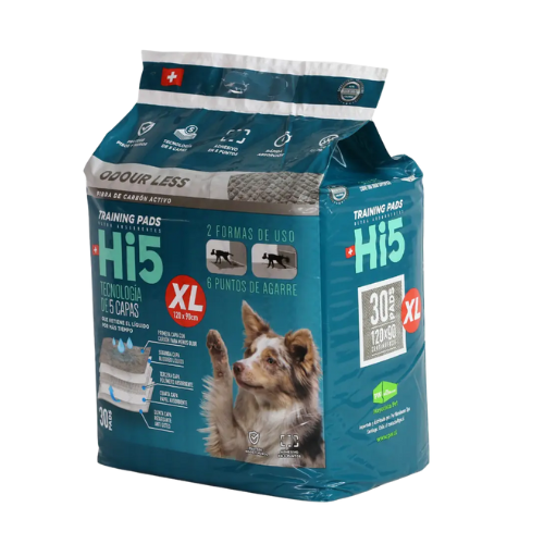 Las Sabanillas de Carbón Hi5 son paños absorbentes diseñados para mantener el área de tu mascota limpia, seca y libre de olores. Gracias a su tecnología con carbón activo, neutralizan los malos olores y ofrecen máxima absorción, ideales para entrenamiento, viajes o mascotas en recuperación.